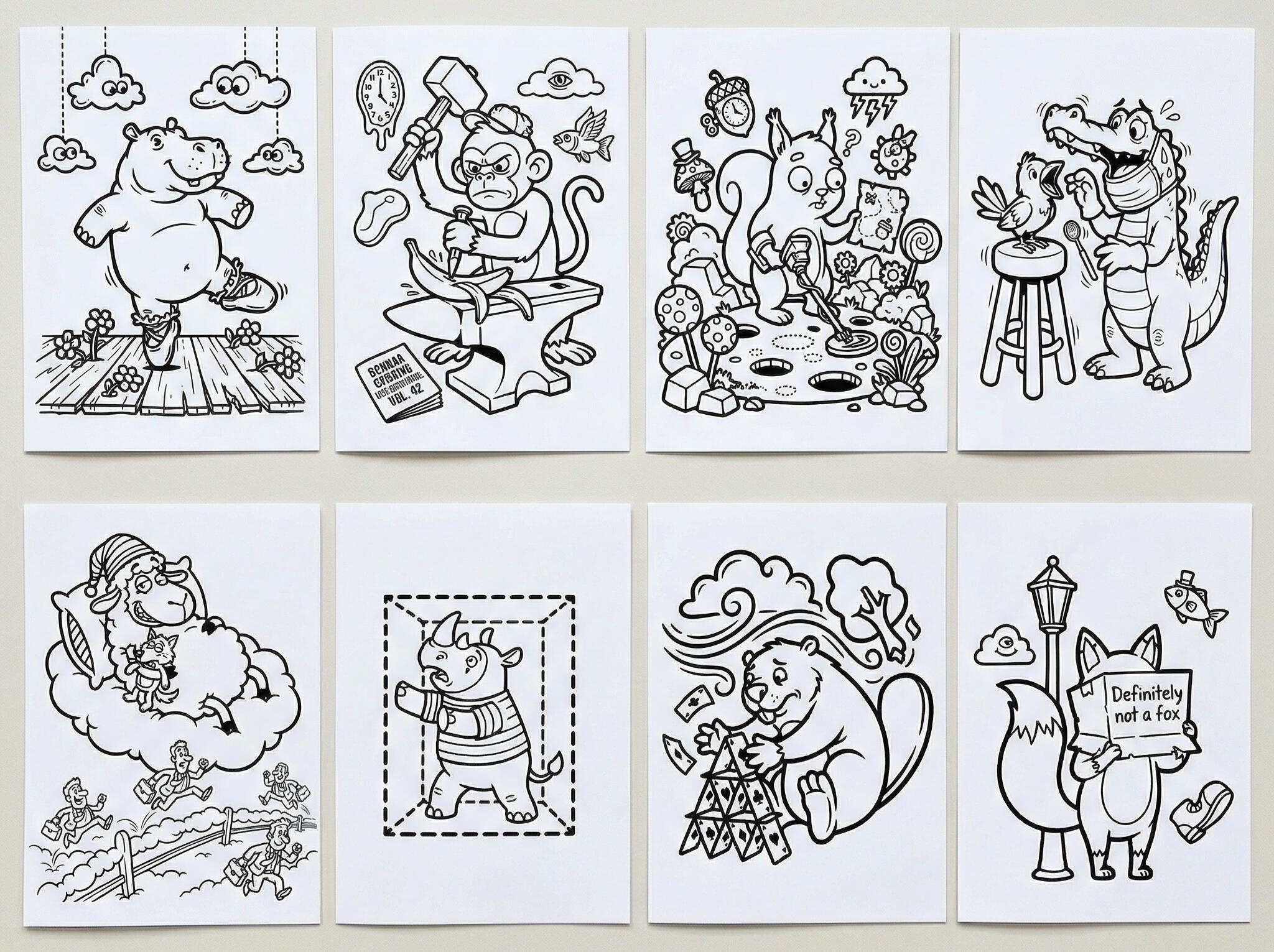 This coloring book is packed with absurd animals, strange situations, and delightfully weird scenes designed to make you smile, laugh, and color without overthinking.No rules. No meaning. Just pure absurd fun.